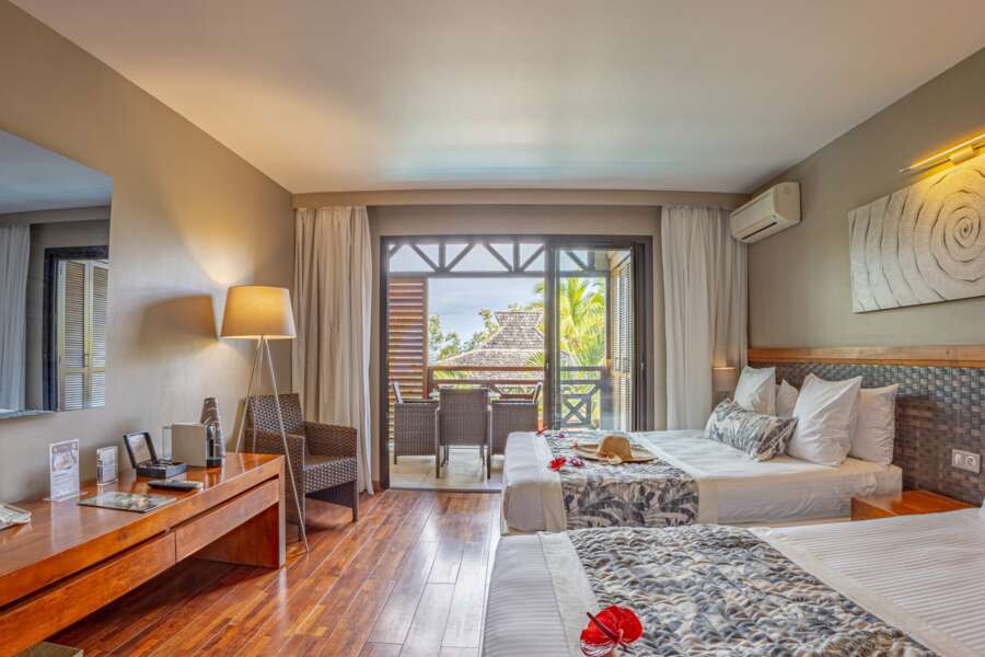 Les 80 chambres et bungalows sont répartis dans le jardin et équipés de bain/douche, climatisation, TV, téléphone et vue sur la mer. Ils se répartissent en 14 chambres Standard, 16 chambres Guetali avec kitchenette situées dans un bâtiment séparé avec piscine privée, 20 Tropic Bungalows avec réfrigérateur dans des bungalows individuels, 20 Bungalows avec kitchenette et 10 Family Bungalows.