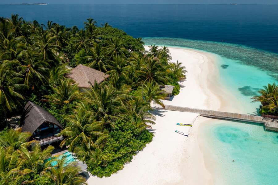 Les 30 hébergements sont construits dans le style maldivien et équipés d'une infrastructure moderne. Toutes les chambres sont équipées de climatisation, ventilateur, TV, téléphone, minibar, machine espresso, bouilloire, armoire à vin, coffre-fort, sèche-cheveux, salle de bains maldivienne ou fermée avec douche. Les 6 Beach Villas (85 m²) sont situées sur le côté ouest de l'île et disposent d'une grande salle de bains en plein air avec baignoire à remous et douche extérieure ainsi que d'un lit de jour sur la véranda.