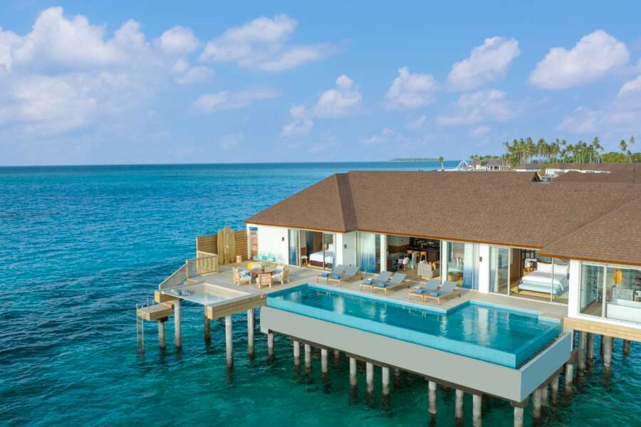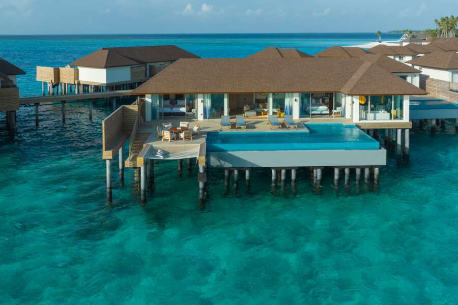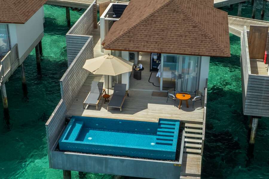 Il y a également 2 2-bedroom Overwater Pool Residences (287 m², piscine 28 m²) et une 3-bedroom Sunset Overwater Pool Residence (368 m², piscine 28 m²) au bout du ponton.