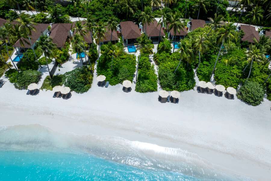 Les 3 2-bedroom Beach Villas (110 m²) et les 3 2-bedroom Beach Pool Villas (131 m², piscine 13 m²) disposent de 2 chambres et d'une salle de bains.