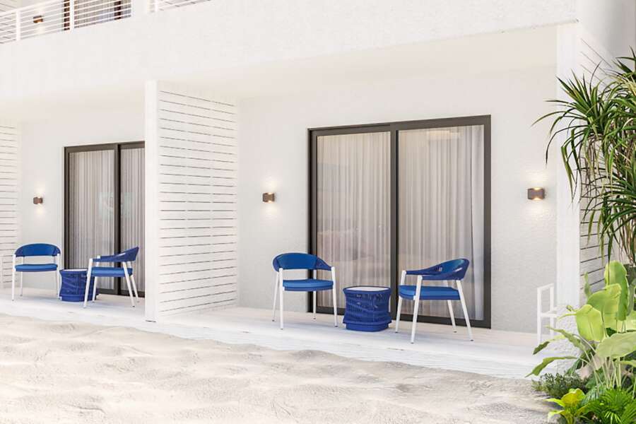 Les 52 Premium Beach Villas (45 m²) sont réparties en unités doubles le long de la plage et disposent d'une salle de bains fermée avec douche en plein air.