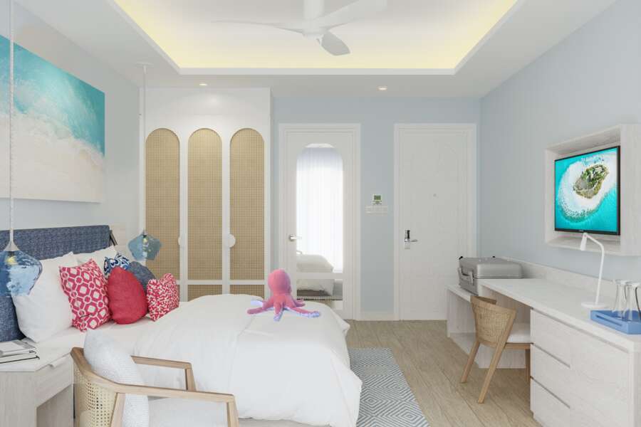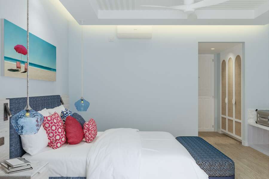 Les 68 hébergements se présentent tous dans un design accueillant et lumineux avec des touches colorées élégantes. Ils sont entourés d'une végétation tropicale et équipés de climatisation, minibar, téléphone, coffre-fort, TV, sèche-cheveux ainsi que d'une bouilloire à thé/café.