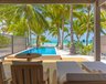Les 27 Water Front Villas sur pilotis (60 m²) se trouvent directement la plage. La salle de bains semi-ouverte est aménagée d'une terrasse ensoleillée avec jacuzzi.