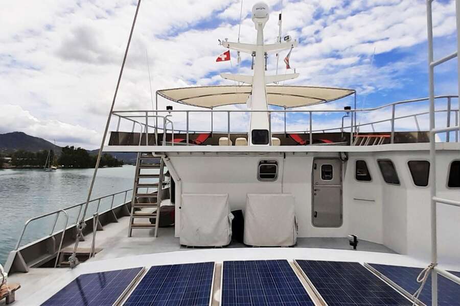 Équipage à bord 4 à 6 personnes (dont un capitaine, un cuisinier, un technicien et un steward). Selon le programme, 1 guide de plongée ou 1 guide naturiste accompagne la croisière.