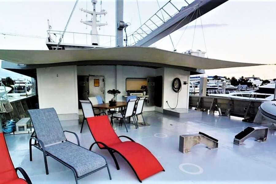 L'ancien bateau de pêche canadien «Basilisk» a été transformé en 2016 en un yacht d'expédition moderne. Il dispose d'un salon lumineux et spacieux (35 m²) avec TV, lecteur DVD, divers jeux et fauteuils confortables, ainsi que d'un coin repas intérieur sur le pont principal. Le pont arrière spacieux offre un coin repas couvert et une terrasse pour se détendre, tandis que le pont supérieur permet de profiter de couchers de soleil spectaculaires.