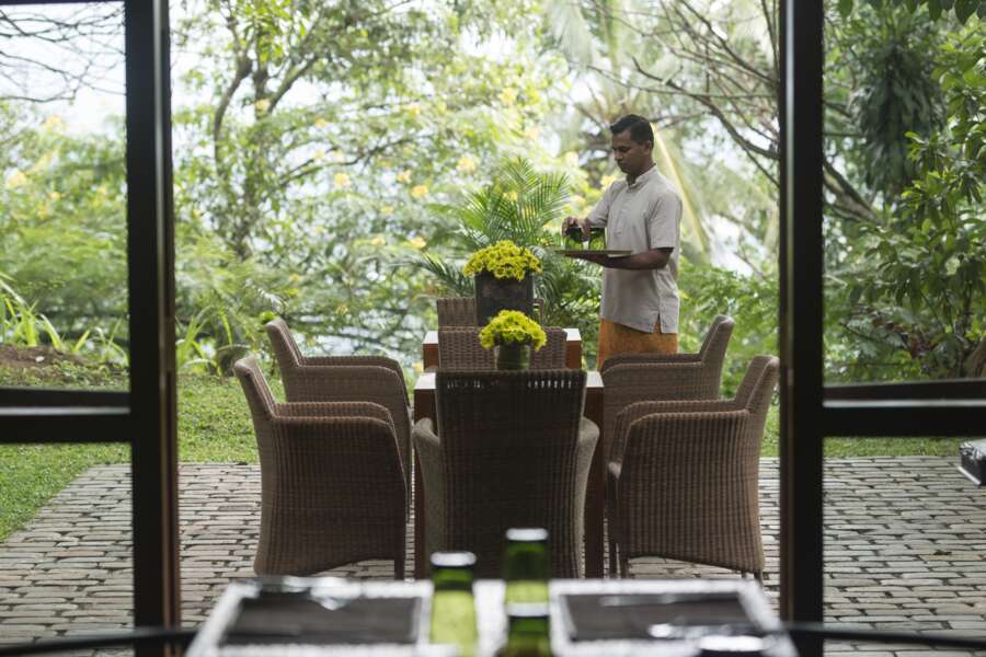 Dans le restaurant, il n'y a pas d'heure fixe pour les repas, l’hôte choisit lui-même l'heure à laquelle il souhaite goûter aux délices culinaires. Une piscine permet de se rafraîchir et la bibliothèque de se nourrir l’esprit. Des vélos peuvent être loués pour explorer la région et un cours de cuisine permet de s’immerger dans la cuisine sri lankaise.