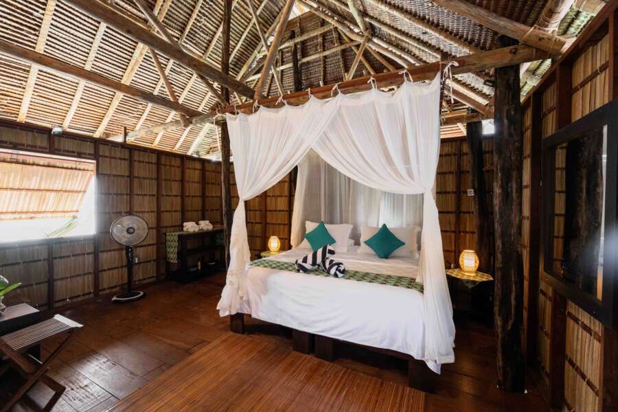 Tous les cottages sont construits avec des matériaux naturels dans le style du pays et disposent de ventilateurs au plafond et sont alimentés en électricité 24h/24.