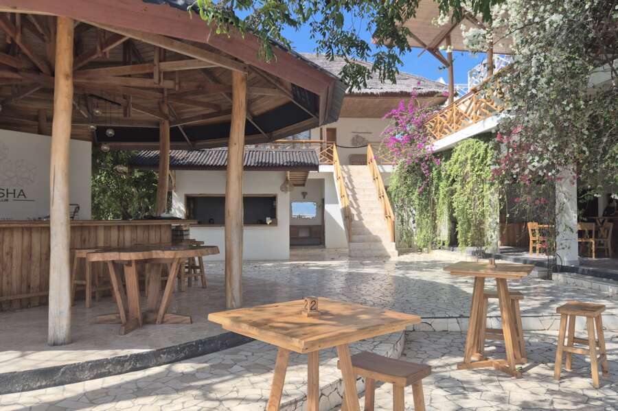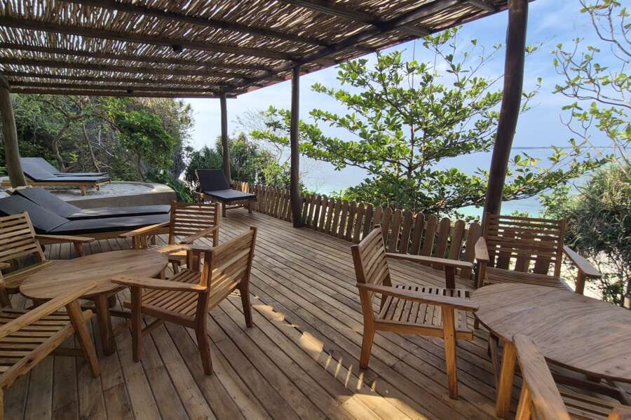L'ensemble du complexe trône sur une falaise surplombant la plage et offre ainsi une vue imprenable sur la mer. Le cœur de l'hôtel est formé par une grande terrasse avec un restaurant servant des spécialités occidentales et locales. La terrasse est complétée par un bar confortable, un coin lounge et des chaises longues. Une connexion Wi-Fi gratuite est disponible dans le restaurant et dans toutes les chambres.