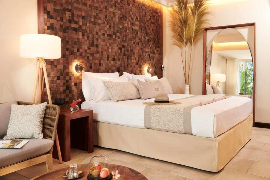 Die 32 Superior Zimmer (34 m²) und 16 Deluxe Zimmer (41 m²) sind komfortabel mit Klimaanlage, TV, Badezimmer, Minibar, Nespresso-Maschine, Safe und Balkon oder Terrasse und in schönem Naturdekor eingerichtet. Die 14 Suites (8 Doppel und 6 für Familien) und 3 Lodges sind grösser und luxuriöser gestaltet und in hübschen kreolischen Bungalows untergebracht. Zudem gibt es 5 Pool Lodges mit eigenem Pool.