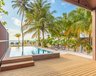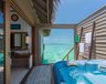 Die 44 Jacuzzi Water Villas und die 33 Ocean Villas (85 m²) sind in die Lagune gebaut und durch einen Steg mit der Insel verbunden. Sie verfügen über ein grosszügiges Schlafzimmer, Wohnecke, Kaffeemaschine und Jacuzzi im halboffenen Badezimmer. Die Villen bieten direkten Zugang ins Wasser.