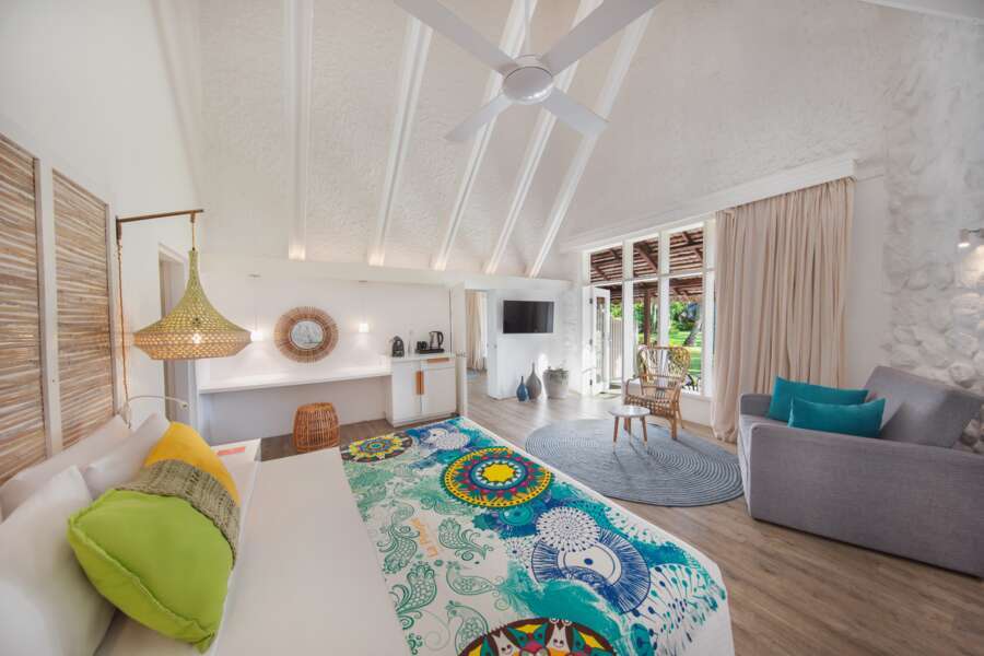 In den strohbedeckten Bungalows, wie sie typischer für Mauritius nicht sein könnten, liegen die 248 Bungalows, Pavilions und Suiten. Die 92 Garden Bungalows und 76 Premium Garden Bungalows (beide 25 m²) sind in Doppelbungalows untergebracht und liegen im Garten verteilt, wobei letztere ruhiger gelegen sind, teilweise Meersicht bieten und eine Espresso-Kaffee-Maschine im Zimmer haben. Die 40 etwas grösseren Beach Pavilions (35 m²) befinden sich in einzelstehenden Bungalows näher am Strand. Für Familien eignen sich die 32 Garden Family Bungalows (50 m², bestehend aus 2 Garden Bungalows mit Verbindungstüre) sowie die 6 Deluxe Beach Family Pavilions (70 m², bestehend aus 2 Beach Pavilions mit Verbindungstüre). Alle Zimmer verfügen über Bad, Dusche, WC, Klimaanlage, Deckenventilator, Telefon, TV, kostenloses Wi-Fi, Minibar, Safe, Tee-/Kaffeekocher, Haartrockner und Sitzgelegenheit. Des Weiteren verfügt das Hotel über 2 Duke of Edinburgh Suites (78 m²) mit privater Terrasse und separatem Wohn- und Esszimmer.