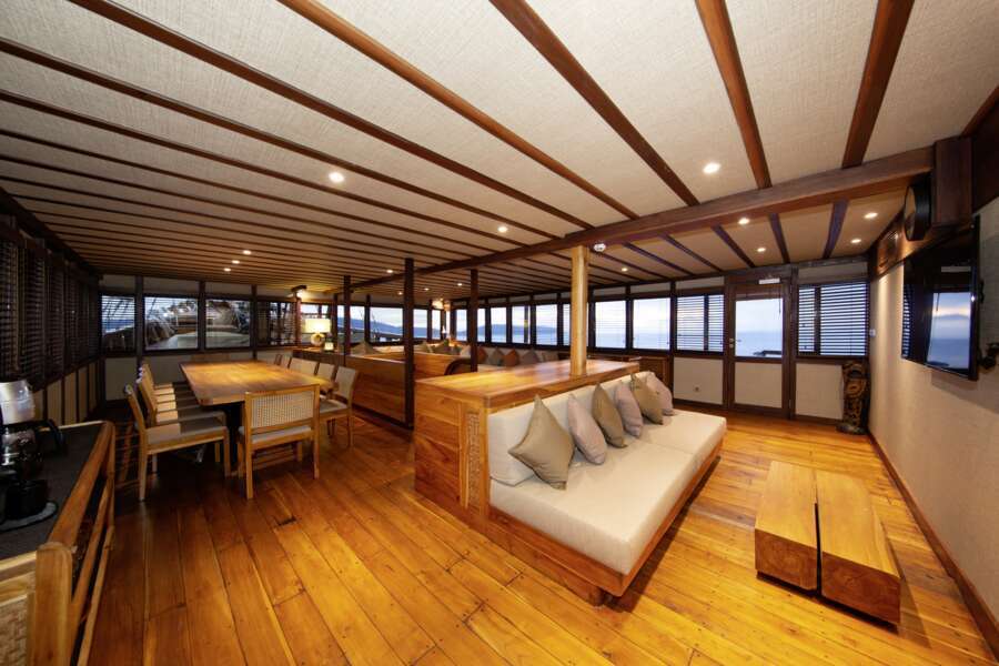 Mit der modernen Ausstattung und den luxuriösen Platzverhältnissen setzt die Coralia neue Massstäbe. Selbst bei voller Belegung mit 16 Personen findet jeder Gast ausreichend Raum, um sich zwischen den Tauchgängen zu entspannen. Hierfür sind besonders das grosszügige Sonnendeck und die Lounge auf dem Oberdeck geeignet. Der geräumige Salon mit dem grossen Esstisch ist klimatisiert und verfügt über eine gemütliche Lounge. Im Aussenbereich hat es zusätzliche Sitzgelegenheiten im Schatten. Der Kameraraum befindet sich auf dem Hauptdeck. An Board werden Massage- und Wäscheservice angeboten.
