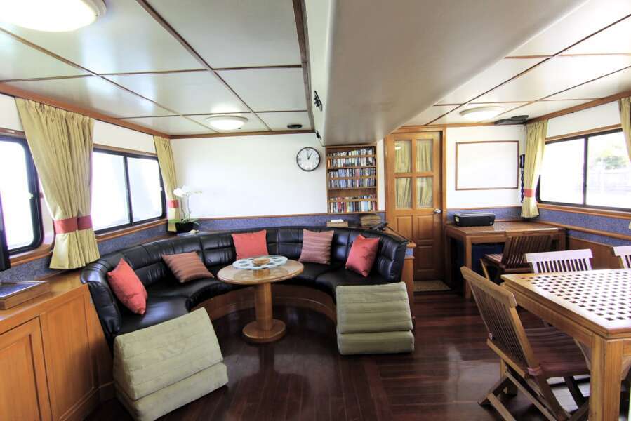 Im Restaurant auf dem Hauptdeck werden schmackhafte Mahlzeiten aus thailändischer, indonesischer und westlicher Küche serviert. Im Salon stehen TV/DVD, Musikanlage und eine Leseecke zur Verfügung. Sonnendeck auf dem Oberdeck sowie Briefing-Deck auf dem Hauptdeck.