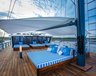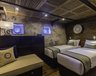 Die 9 höchst komfortablen Kabinen (16 - 60 m²) sind in vier Kategorien unterteilt und verfügen über Klimaanlage, Safe, Dusche/WC, Doppelbetten oder Einzelbetten, Stauraum.